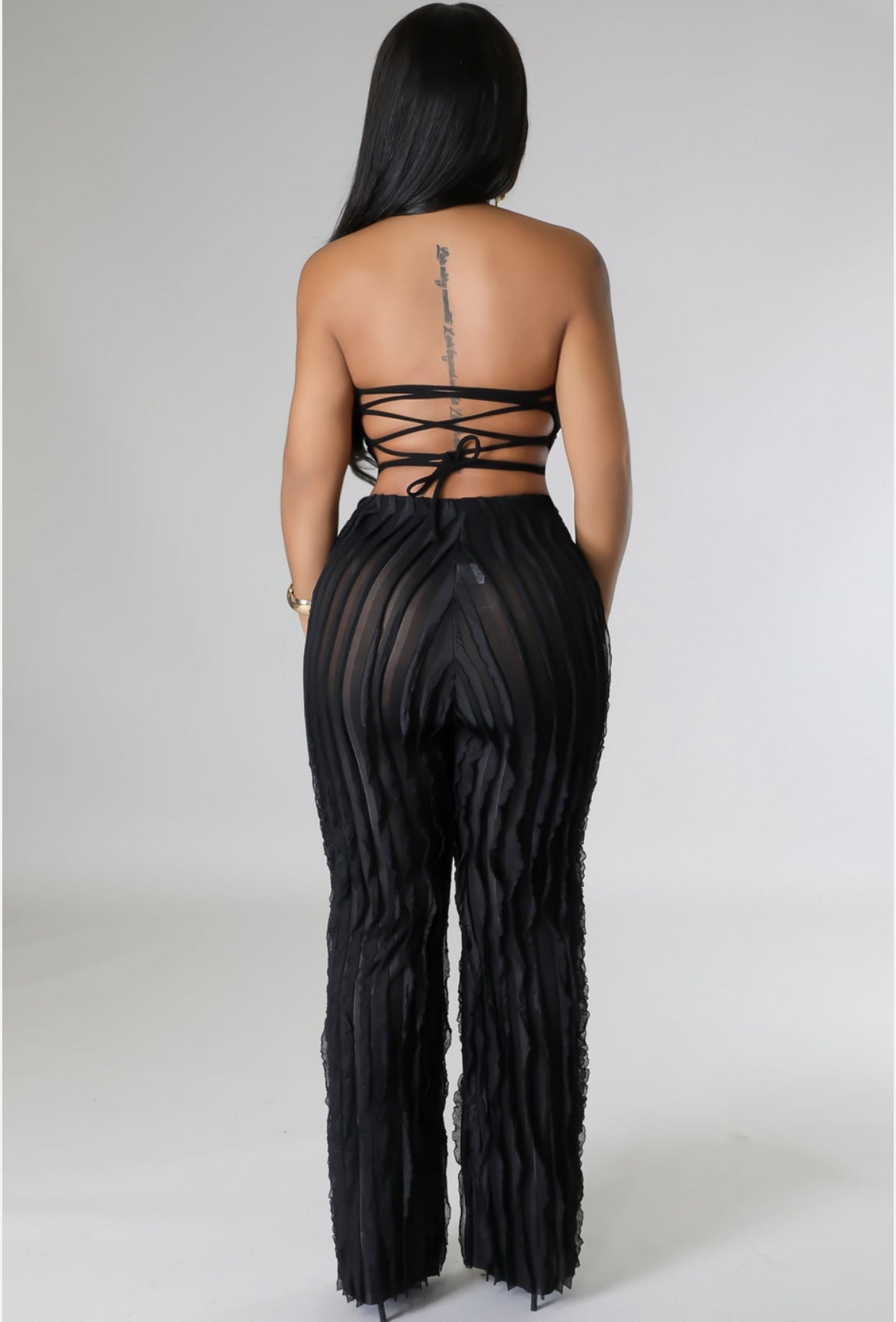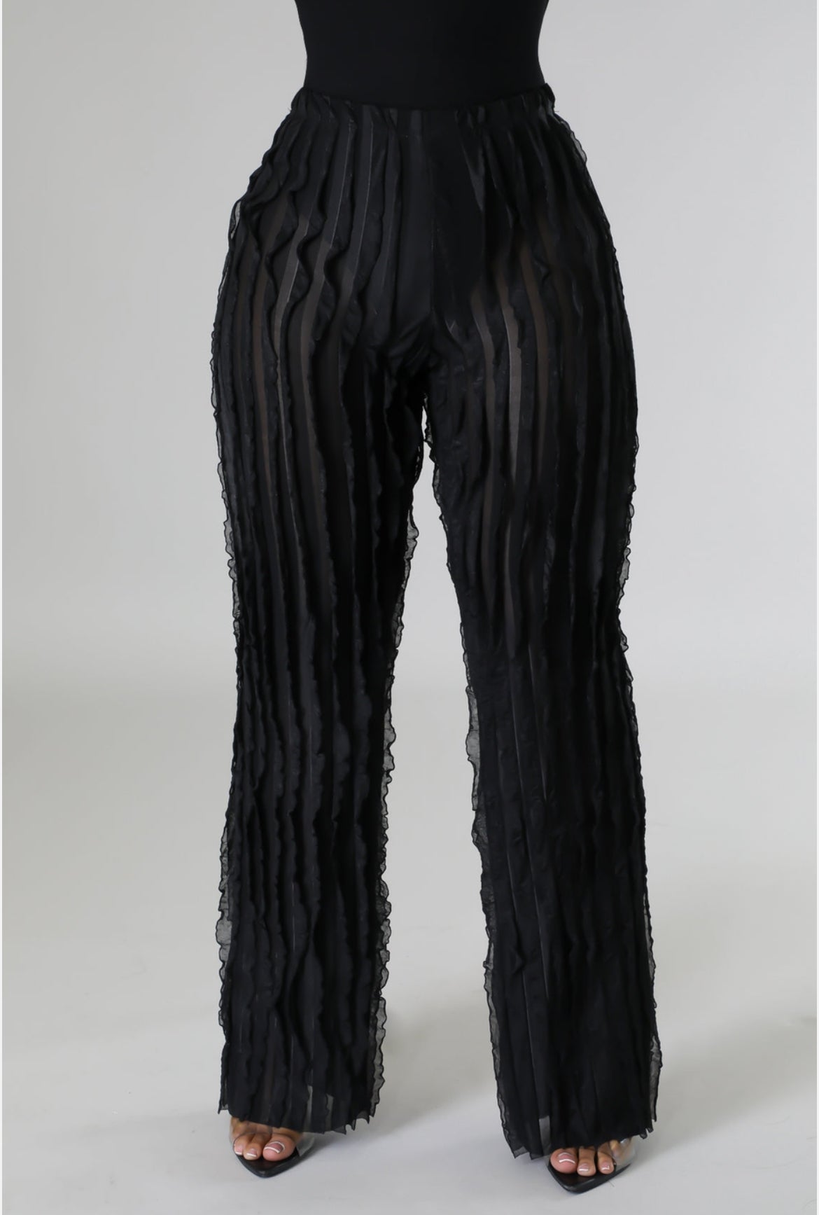 Estos pantalones con detalle de volados son perfectos para usar sobre un bikini. Tienen una cómoda cinturilla elástica, una divertida textura de volados y perneras anchas. Al no tener cierre, estos pantalones son fáciles de poner y quitar. Asegúrate de lavarlos a mano con agua fría y tienen una entrepierna de 32 pulgadas. La modelo que se muestra usa talle pequeño.