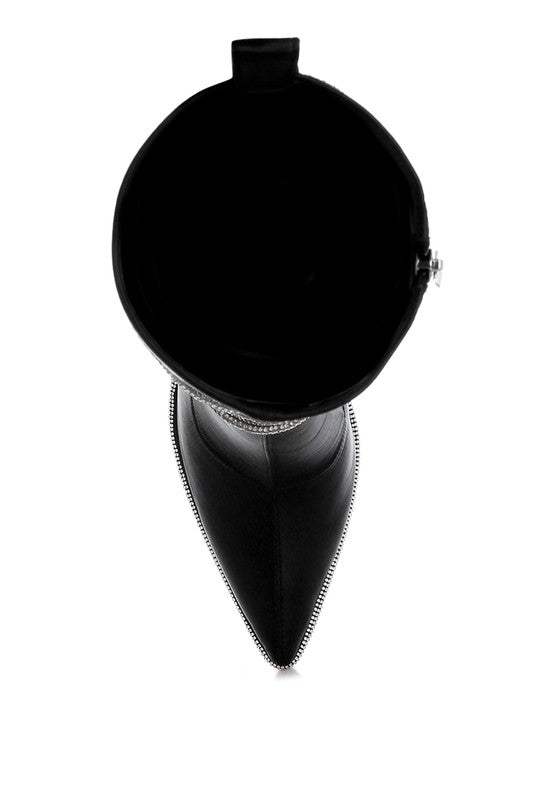 Dacia Rhinestones Strap Satin Calf Boots