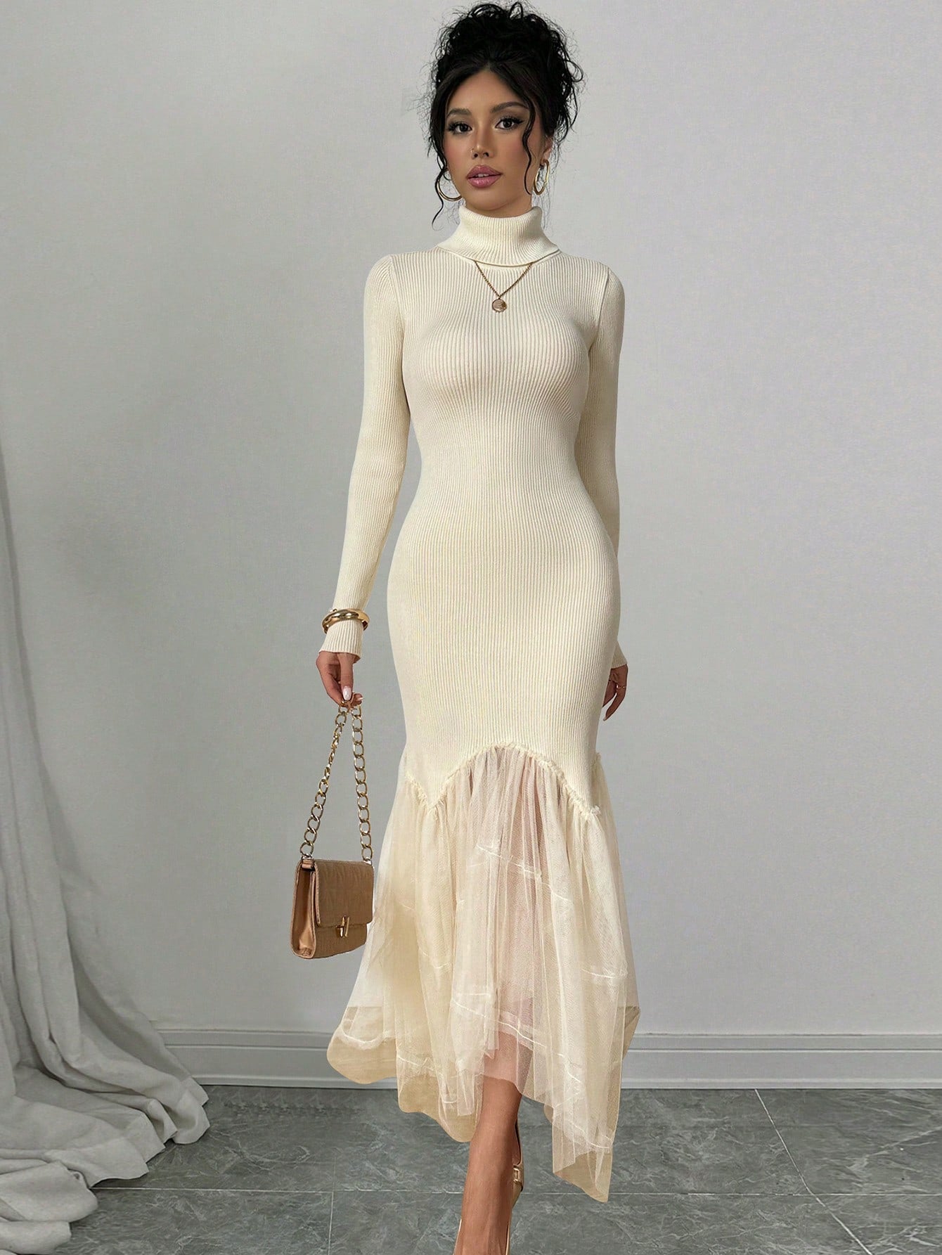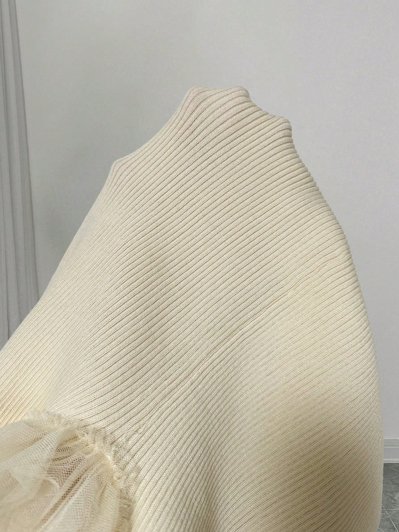 - Details: Contrast Mesh, Ruffle Hem, Tiered Layer