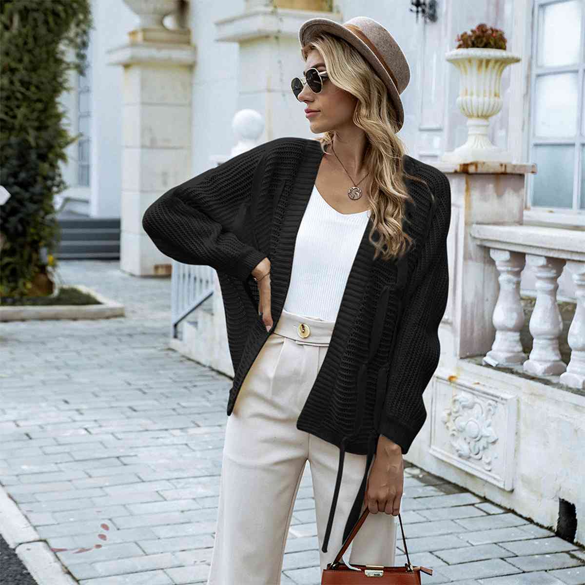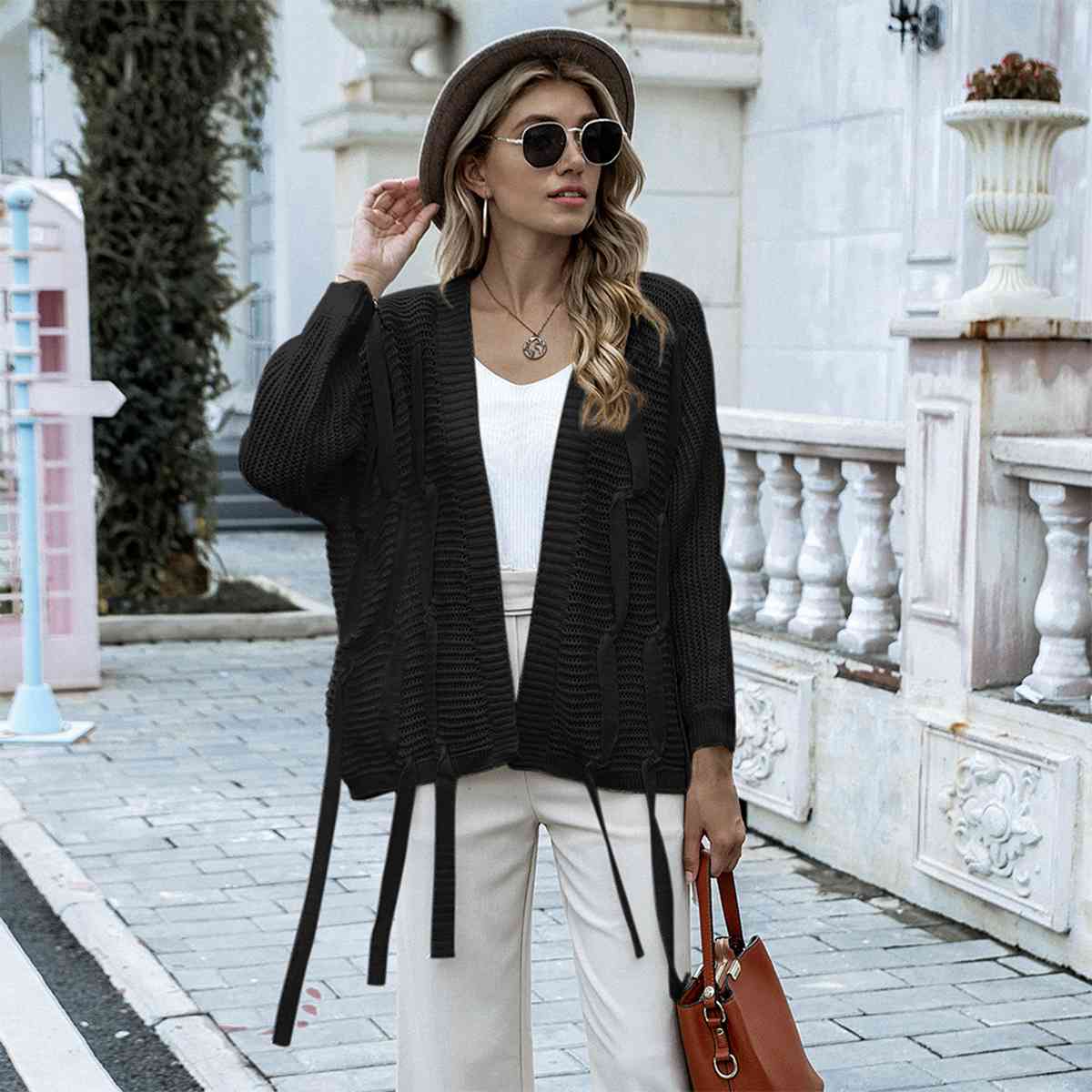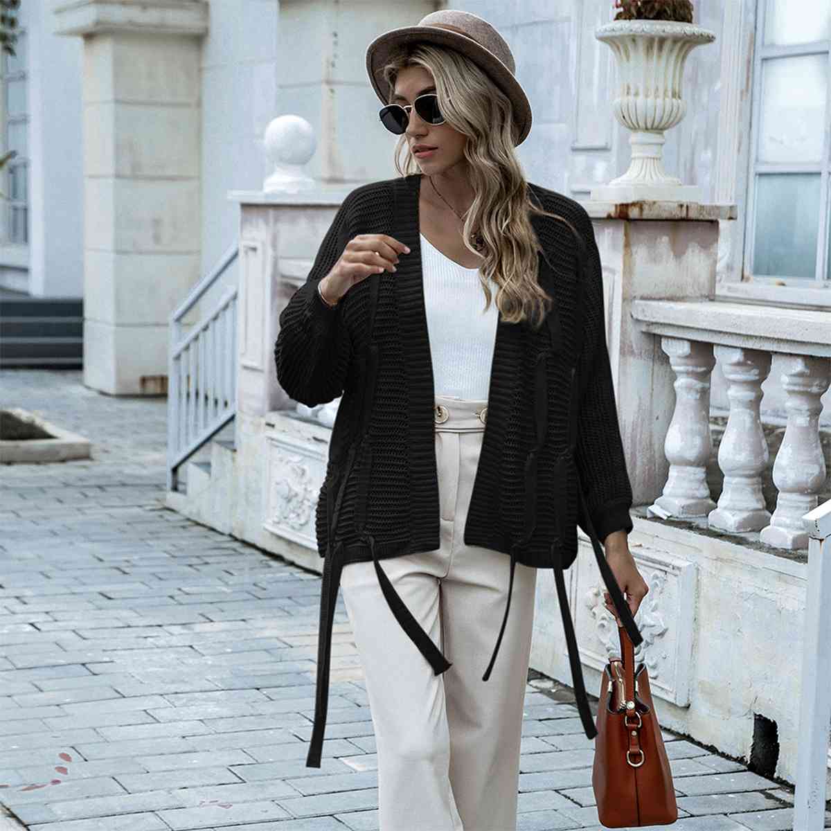 Cardigan ouvert avec bretelles sur le devant