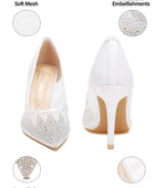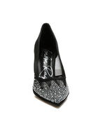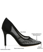 Meet the exquisite rhinestone-embellished pumps, bound to create a sizzling, spellbinding impression. The pumps feature tall stiletto heels, a closed pointed toe for added drama and plush cushion insoles for extra comfort. Ideal for parties, weddings, and romantic date nights.